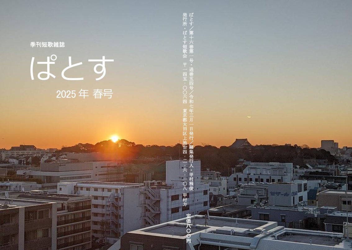 「君のゆめ」秋山義仁 「夕暮れどきの歌人」石邉綾子 「年の暮れ/年の始め」井上省吾 「長いお別れ/夜の病院」甲村雅俊 「白ネコ」氷室敬子 「お茶一杯/年賀状/甲村秀雄先生 追悼」本田洋子 「わたくしは困っています」丸山光